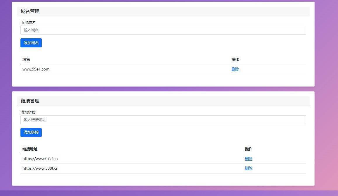 中转域名和需要跳转显示的域名在后台添加,如果是在微信推广,中转还有跳转显示的域名都不能红,红了就打不开