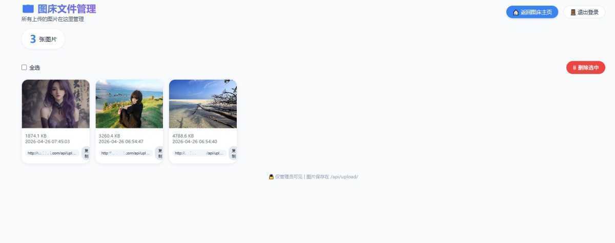 图床需求不如博客建站程序那么,算是一个小众的需要,所以基本上没有什么大规模的免费图床程序。今天给各位小伙伴分享一款个人图床源码,如果有需要的小伙伴可以下载,免费的图片外链比较适合用于网站LOGO、网站背景页或者一些html个人主页上的图片。