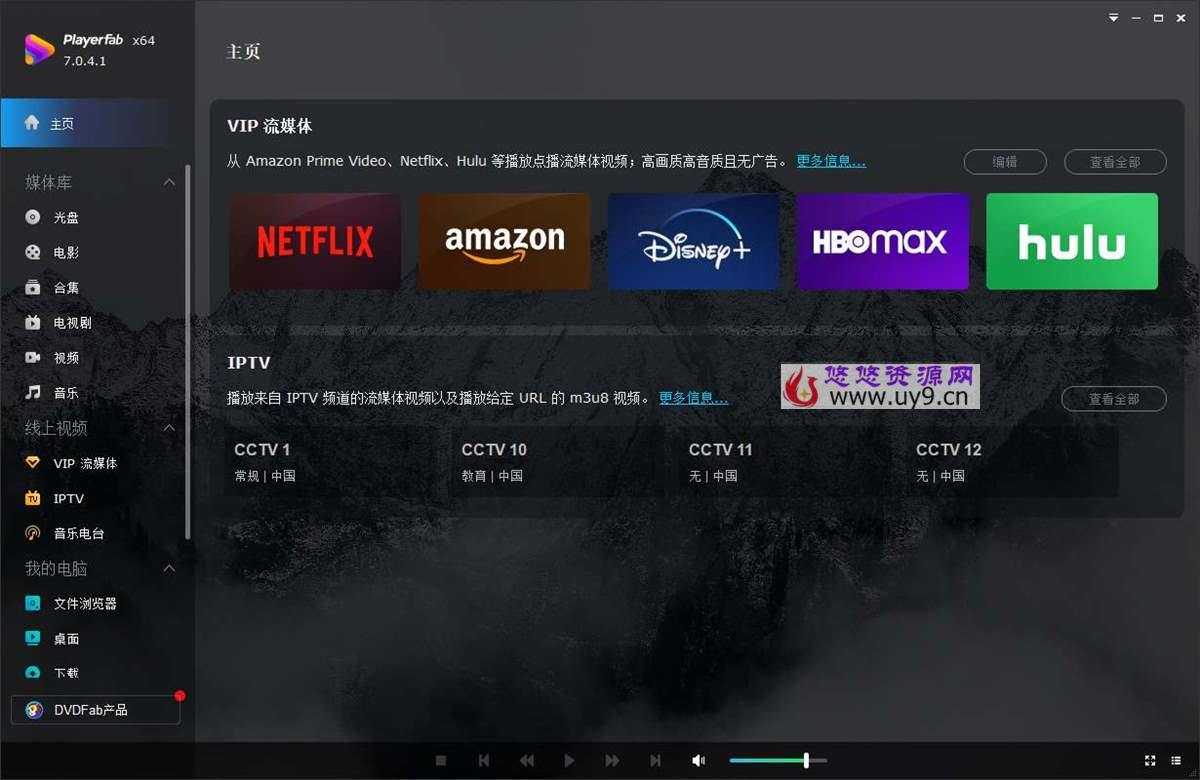 playerfab播放器是一款一流的蓝光高清播放器软件,它使用户能够播放 DVD、蓝光和 4K 蓝光光盘、ISO 文件和文件夹以及导航菜单和 HDR10 支持。playerfab破解版以全方位服务为特色,让用户可以访问本地视频、DVD/蓝光/UHD 光盘以及来自亚马逊、Netflix、Tubi、Peacock 的视频。几乎可以满足您在 DVD、蓝光、UHD 和流媒体视频播放方面的所有需求。支持各种格式,友好的界面,灵活的自定义功能,提供更贴心的播放体验。